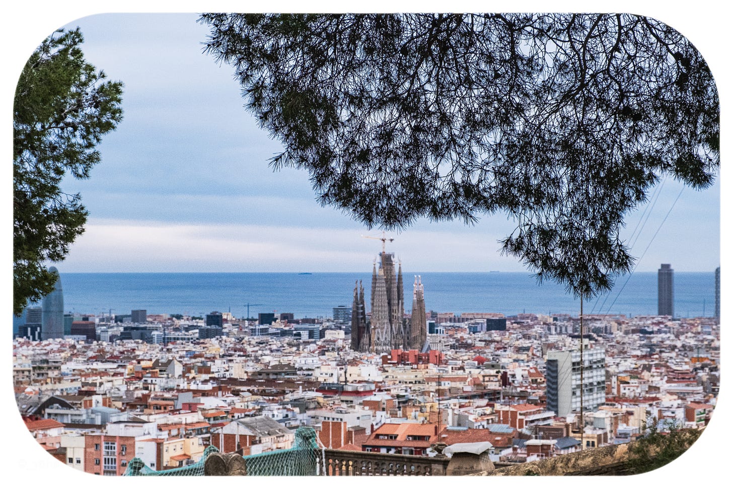 On my way from Park Güell, I got a zoomed-out view of the beautiful Basílica de la Sagrada Família.