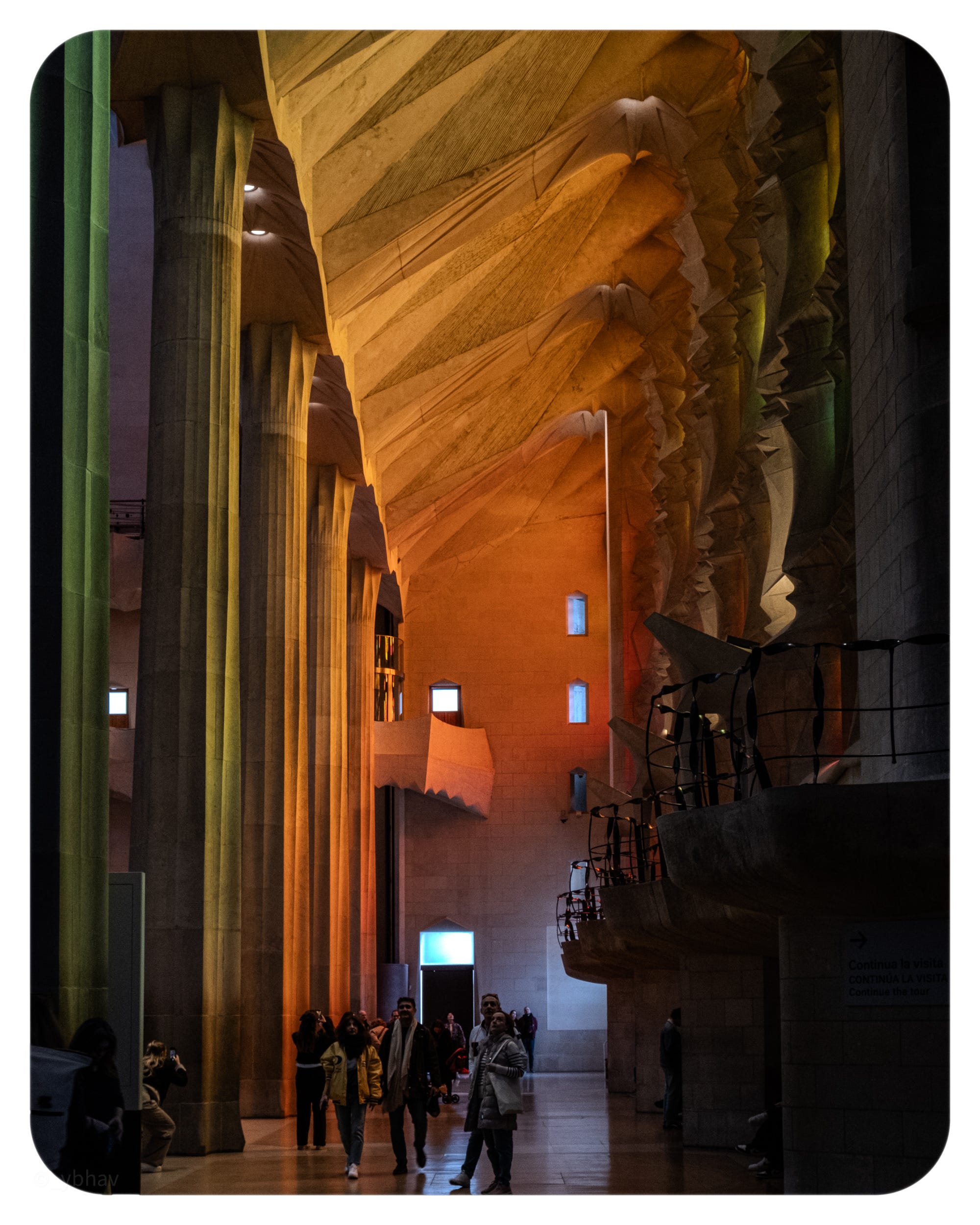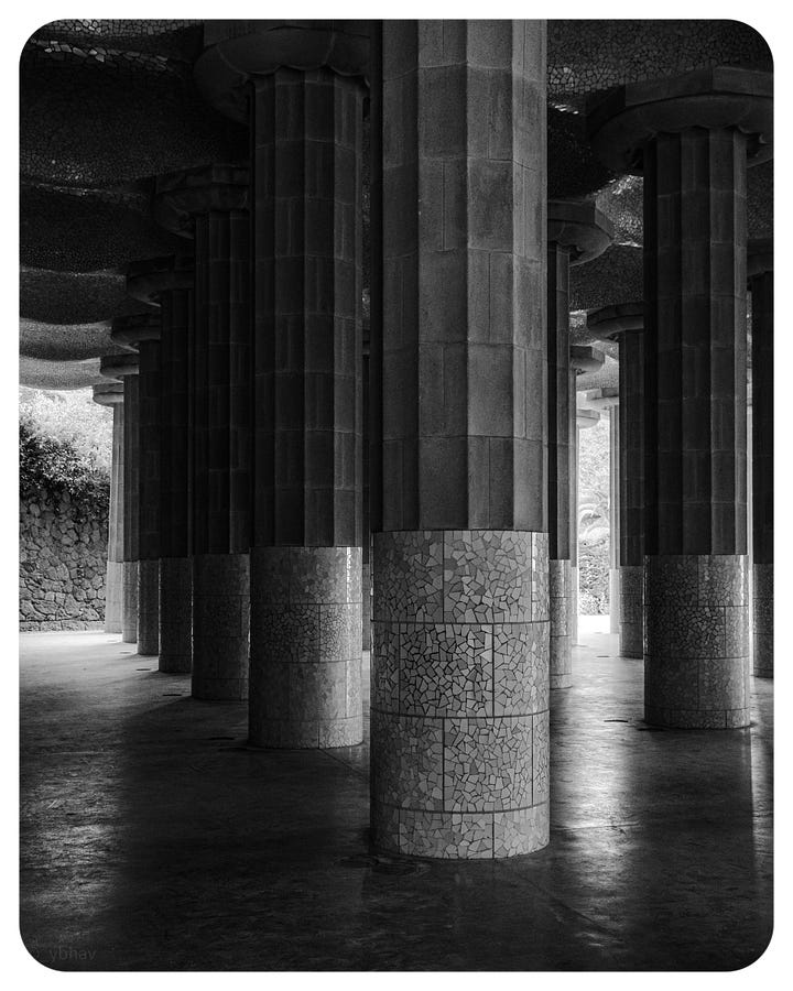 The interiors of the Basílica de la Sagrada Família are a spiritual experience of their own. The reflection of sunrays from the colorful glass panes of the interior columns of the church cut right through any preoccupied thoughts in the mind. It immediately transported me to some deep reflections and made me forget my immediate surroundings.